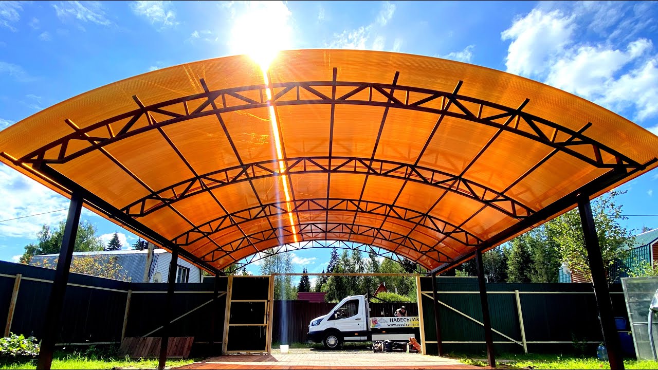 Классический арочный навес из поликарбоната для автомобилей 7х6 | Навесы из поликарбоната Спецкаркас
